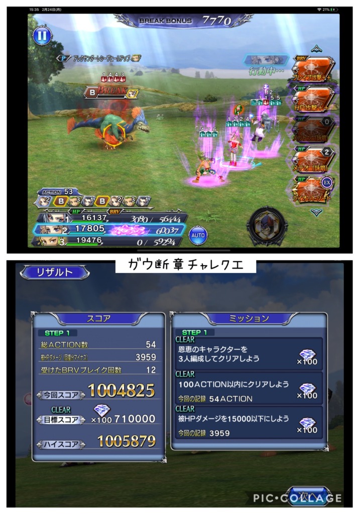 チャレクエの方はセルフィ入れない場合、回復役がガウしかいなくなるので、被ダメに注意が必要になってきます。一回、回復が間に合わなくて被ダメミッションクリアしそこねたんですよね?おかげでネコキックを使った記憶がほとんどない…。
