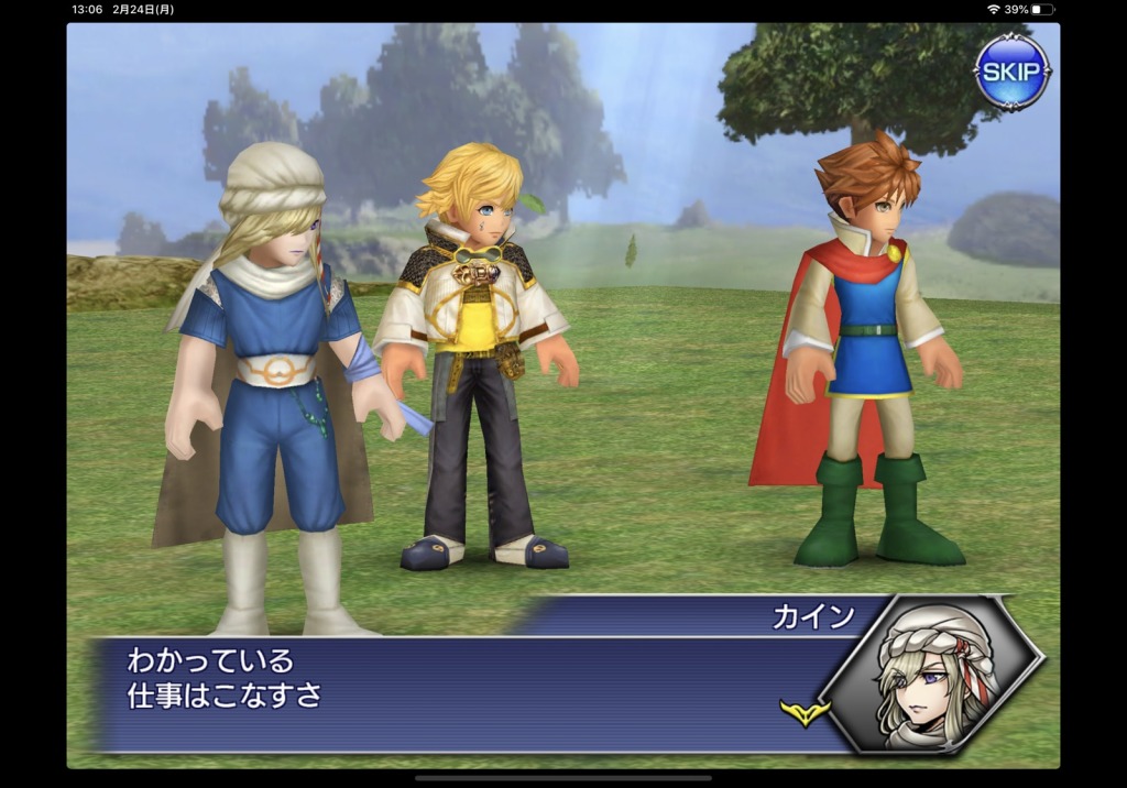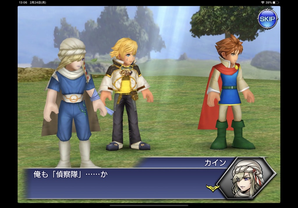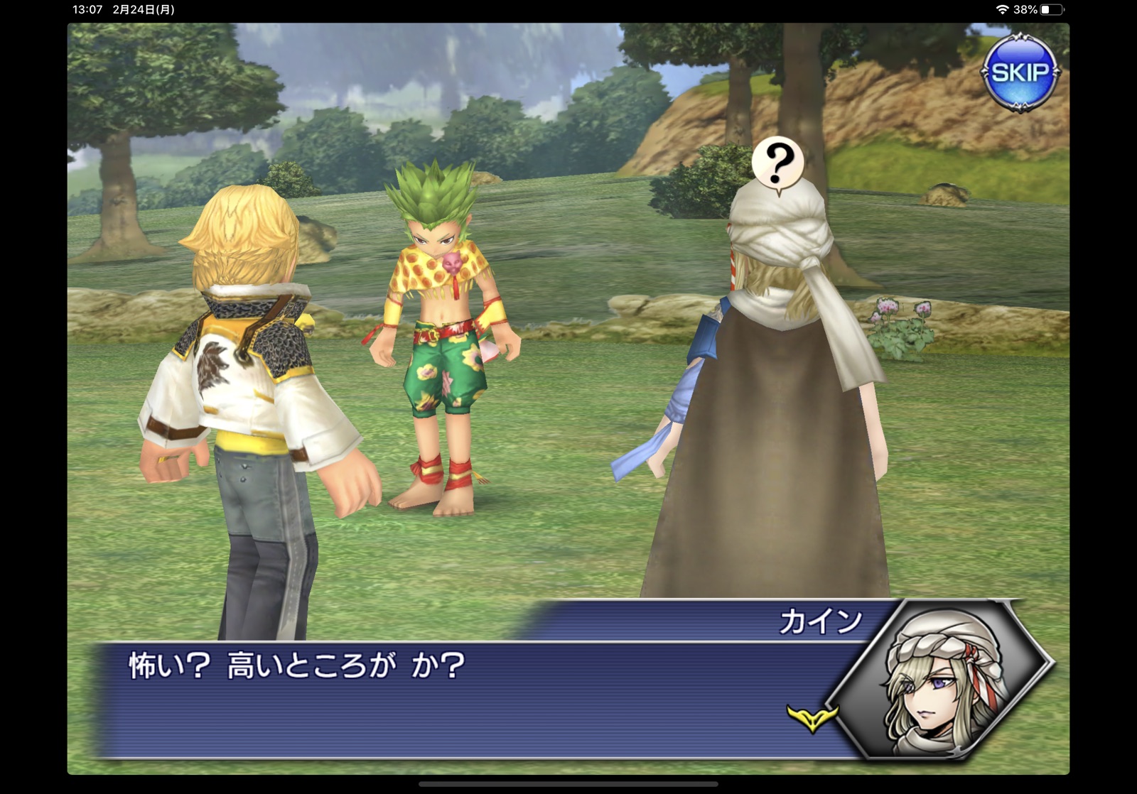 なぜか「偵察隊」とひとくくりにされることにちょっと気が乗らないカインさん、「わかってる、仕事はこなすさ」とやや不機嫌そうでしたが話題が「高いところが苦手」ということに移ると、ちょっと楽しそうなのがめっちゃくちゃ萌えました…。ポロムちゃんにも将来的にはこんな感じで「がんばれよ」「が、がんばります!」って柔らかく笑いながら(※妄想)腰の上に下ろしてあげたりとかするんですかね?(何の話?)