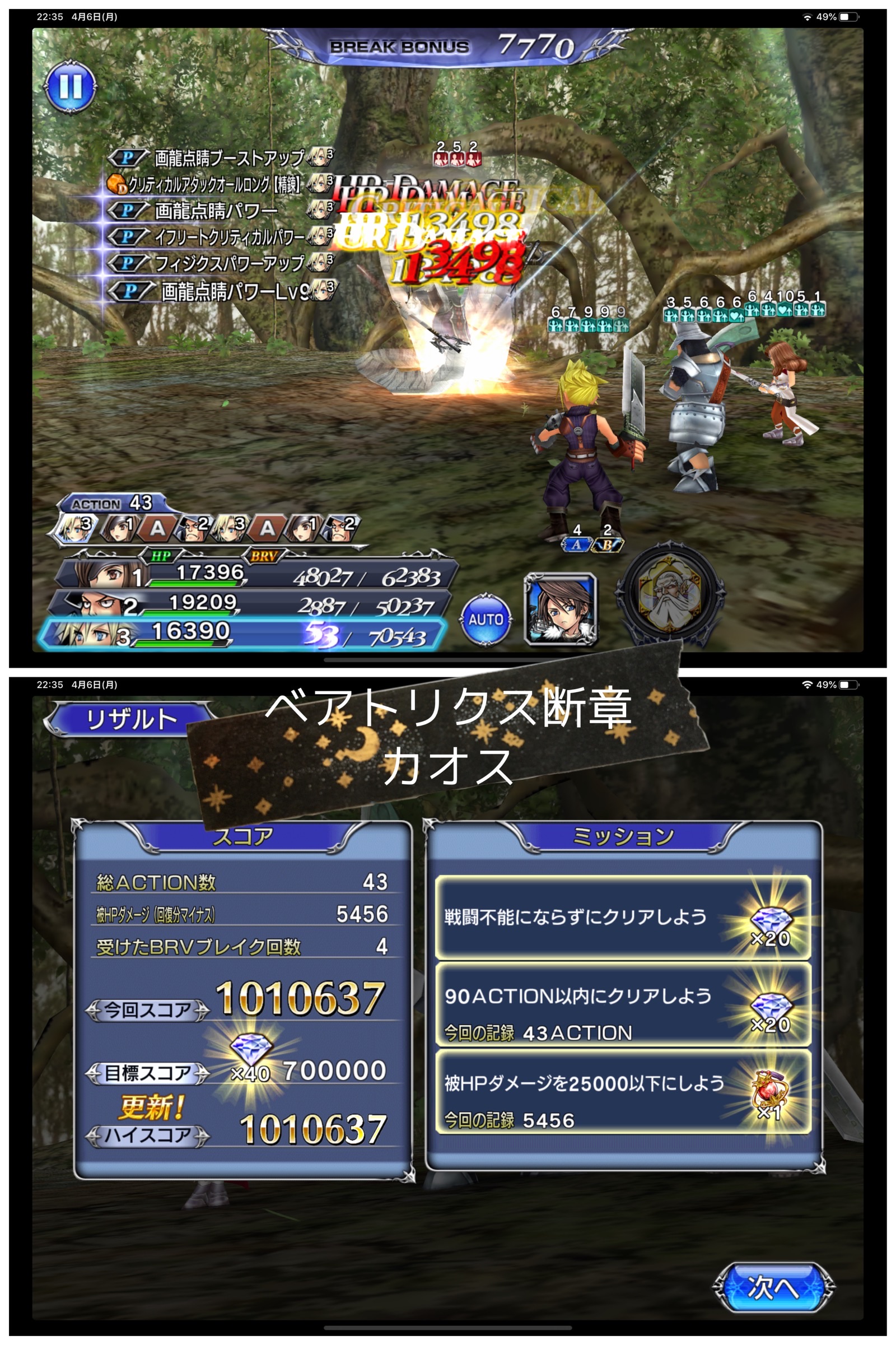 前情報でゴル兄カオスはBRV加算+HP攻撃で全滅すると聞いていたので、蘇生役としてヤシュトラさん連れて行ったし、BRV加算封じでセッツァーが使えると踏んだのですが、結局フリーズは消されちゃうので実質3回しか凌げない。召喚とかフレセッツァーでどうにかするのがベストなのかなあ。