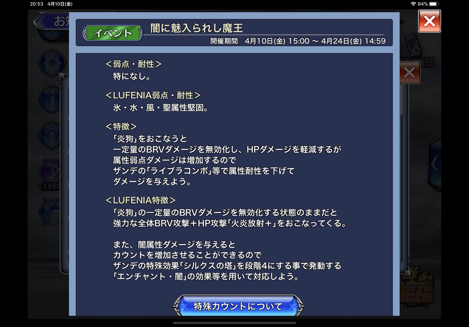 一応ね、今回のイベントはエーコが恩恵だから聖出禁はなかろうと踏んでたんですけど、まさかの出禁でした。何か前もユフィとかランレン恩恵なのにほぼ全属性と遠距離堅固だったし、ルフェニアでは恩恵など関係ないというのが運営の意思のようです?まあ恩恵活かしたければチャレクエがあるし、ルフェニアは編成に幅ができるならそれはそれで助かるんだけどさ。