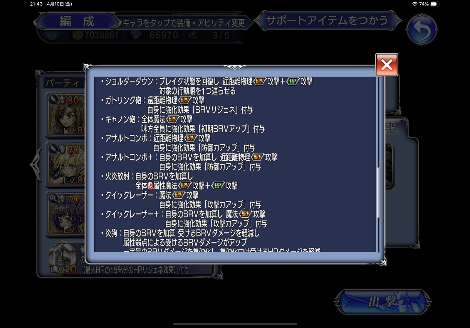 ロッタもライトニングもほぼアビ使い切り、クラウドも凶斬りが2〜3回という感じでした。