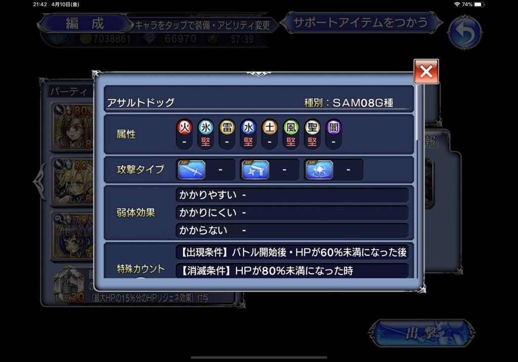 さて、これがとんでもないザンデ接待というか、ザンデがいても変性とPS次第でちょいちょい全滅したというのを見かけました。前述のとおり、私はザンデフルセットを引けたのですがパワピがなくて育てられないので、ザンデ抜きでの攻略を余儀なくされました。そりゃまあ、無理やりパワピを調達することも不可能ではないのですが、そこまでしてザンデ育てたいかと言われると…。