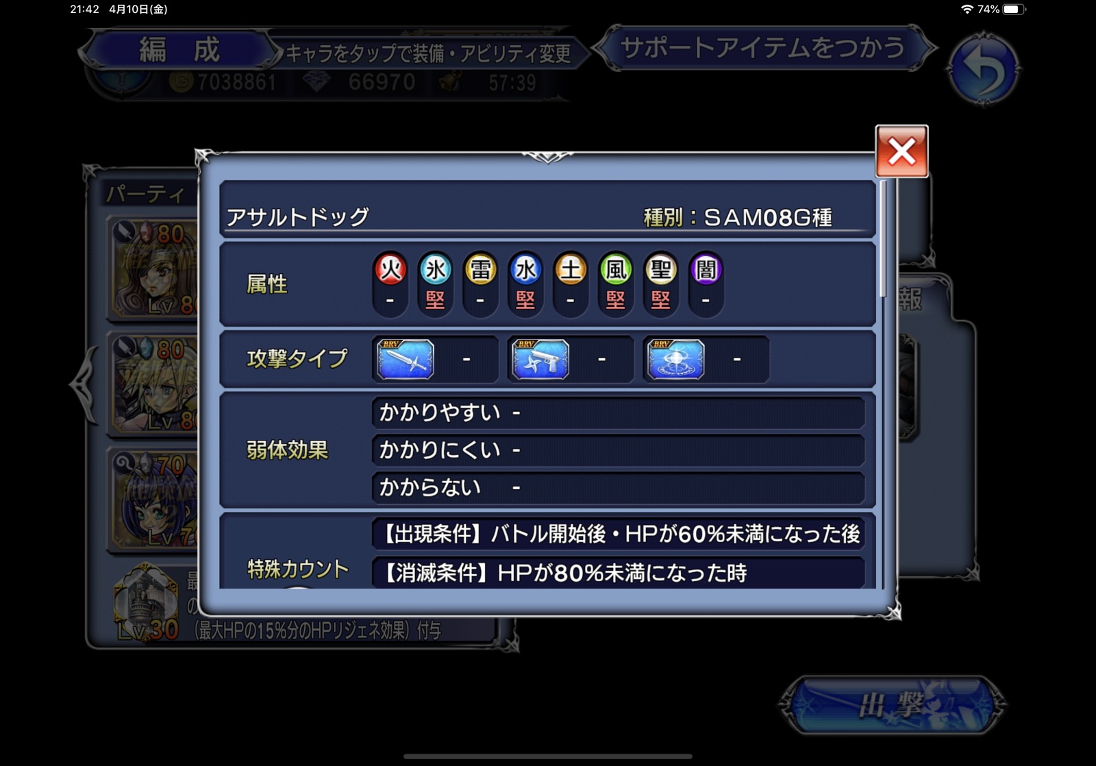 実は、ゴルベーザか暗黒セシルを編成できれば全体エンチャントこそできませんが、闇耐性ダウンを付与した上で自身も闇属性攻撃ができるのでカウント対策と不可視バリア対策ができるように見えるのですが、実際には兄さんは強化ボード未実装ゆえに火力不足(あっても貢献できたかは怪しいけど)、暗黒セシルは絶え間ないALLHP攻撃による事故死の危険性が高すぎて正直無理です。