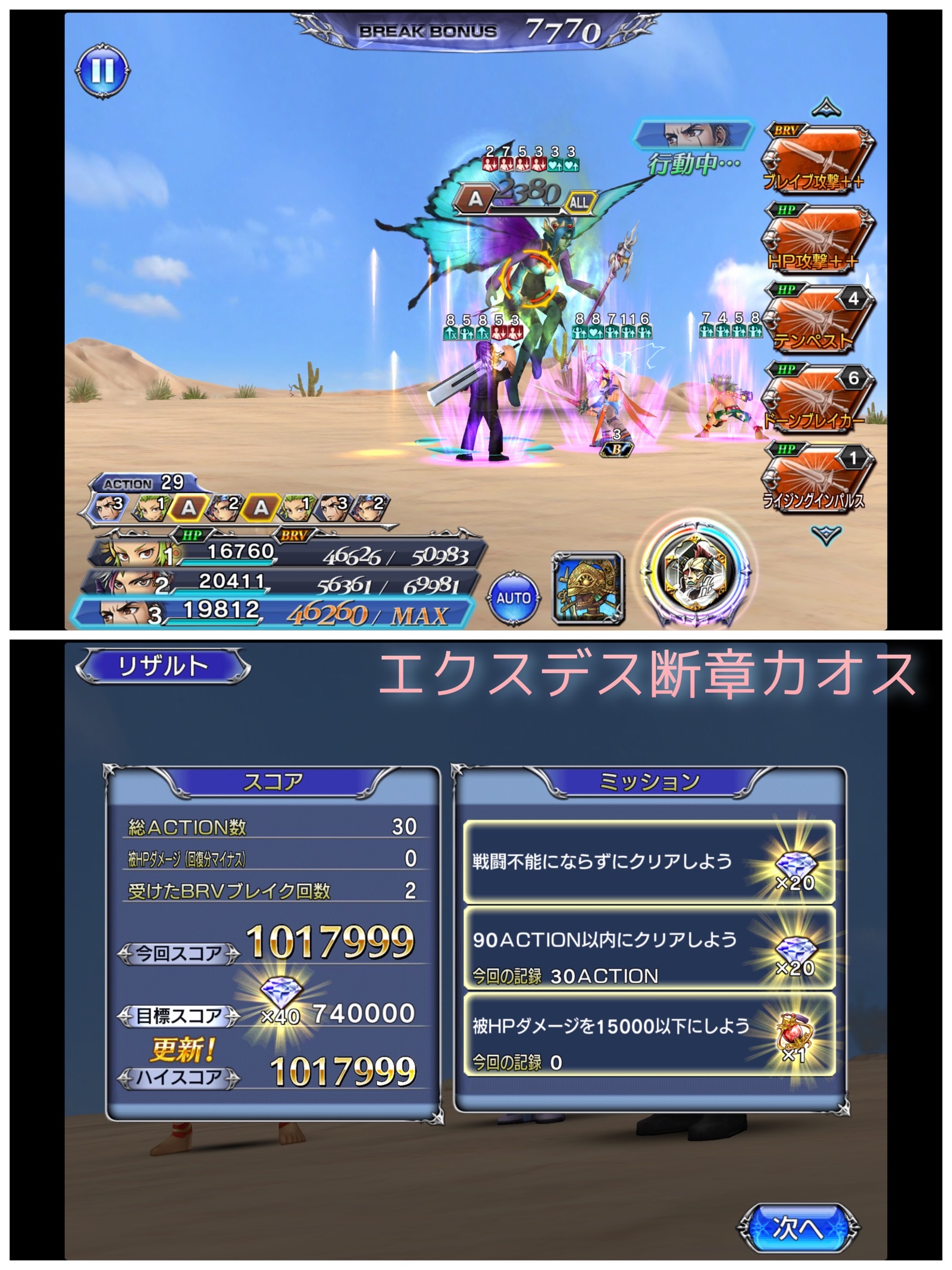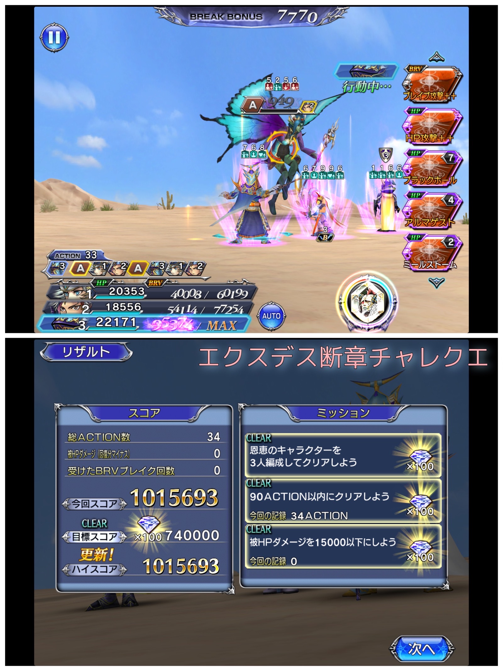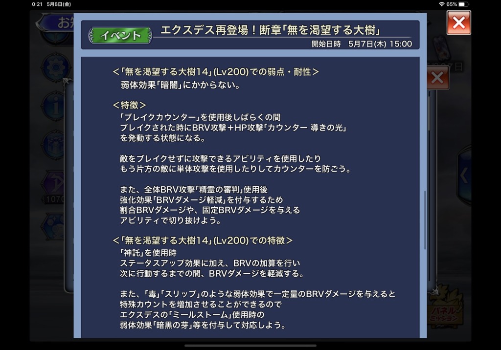 エクスデス断章のボスの一番の特徴が、カウンターモードに入るとブレイクされたときに加算HP攻撃でカウンターしてくるというものでして、敵のBRVを無に帰す能力に長けている(というよりブレイクが一切できない敵に優しい仕様)エクスデス接待イベントでしたが、抜け穴がありまして、こちらのカウンターでブレイクした場合はカウンターされないんですよね。