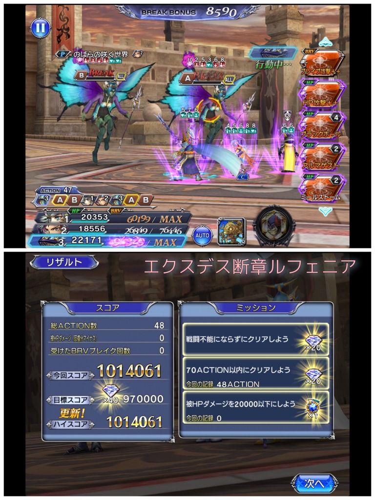 エクスデス自身もLD武器の実装によって、使いやすく調整されたと思いますし、恐らく今後もこの手のBRV加算&ダメージ軽減はもっと威力が増してくると思うので、割合ダメージの需要も増すんじゃないかなあとは何となく。ますますアタッカーの立つ瀬がない。というかこのゲーム、マジでどうすればアタッカーが輝くようになるんですかね?いくら簡単とは言っても終盤になるとかなり高い倍率のダメージ軽減が入ってる感じでしたし、前回のミッションダンジョンルフェニアでも現状ほぼトップクラスの攻撃力を誇るライトニングですらろくにBRVが削れない有様でしたぞ。