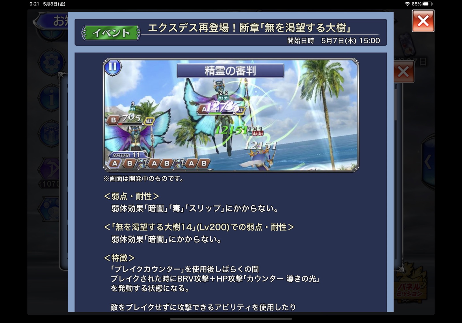 新型コロナによる影響で、約半月遅れとなりましたがマップからきっちり作りこんでいただけて、往年のSFCFFファンとしては嬉しい限りです✨マップが5ラスダンの次元の狭間再現っぽいのもいいし、ボスBGMがイベント時と変わらずネオエクスデス戦のDFFアレンジだったのでテンション上がりましたね〜??