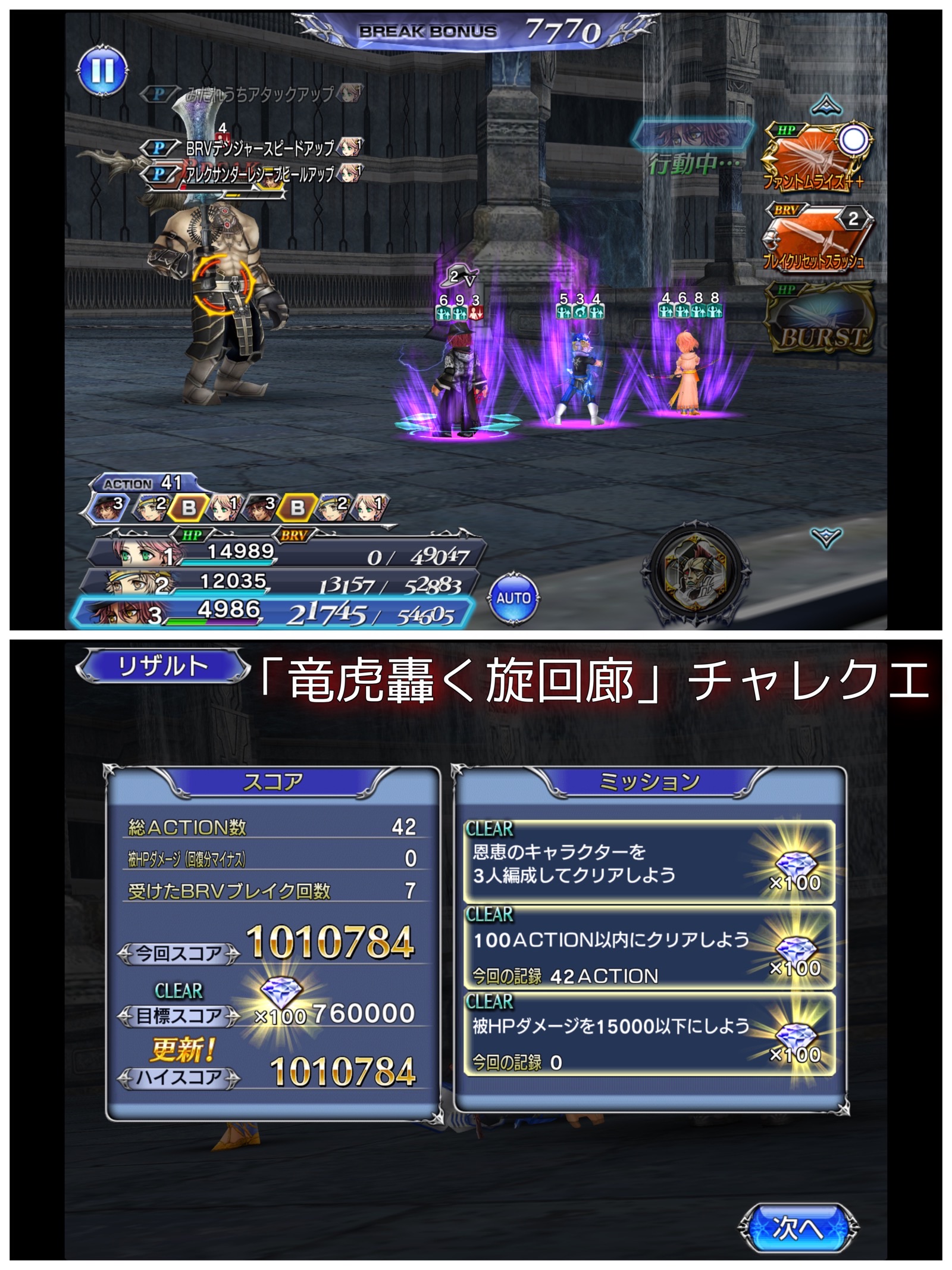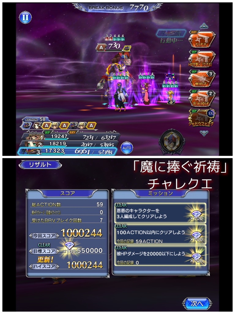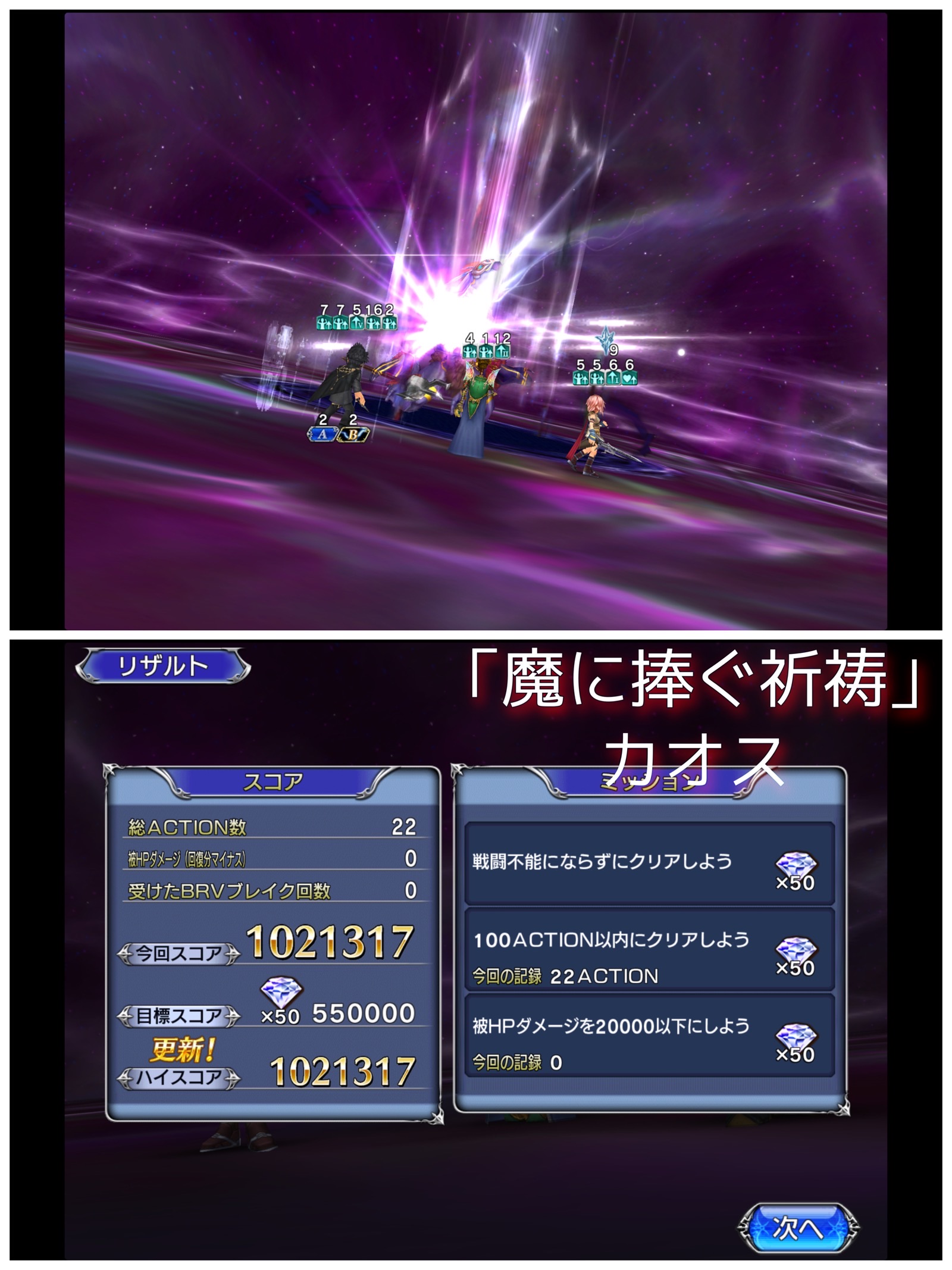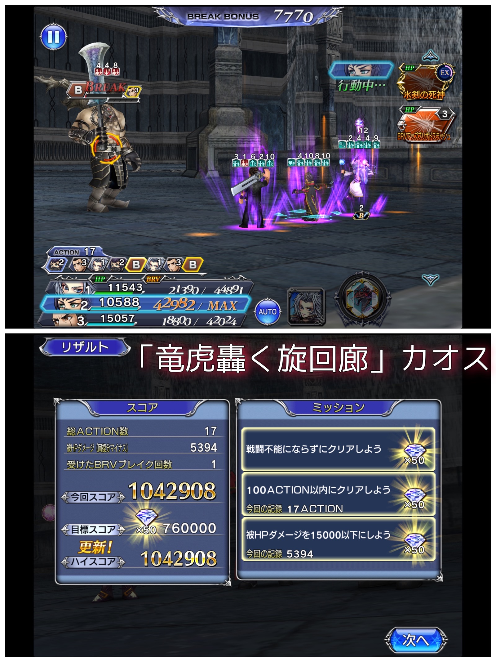 通常カオスの方は最初シャントット・エアリス・フライヤで初見コンプしたのですがスクショ撮りそこねたので、メンバー変えてやり直しました。ノクトとライトでじゅうりんするでち!なお、中央のアミダさんはフレンドのもので、元々はシェルロッタが入ってました。