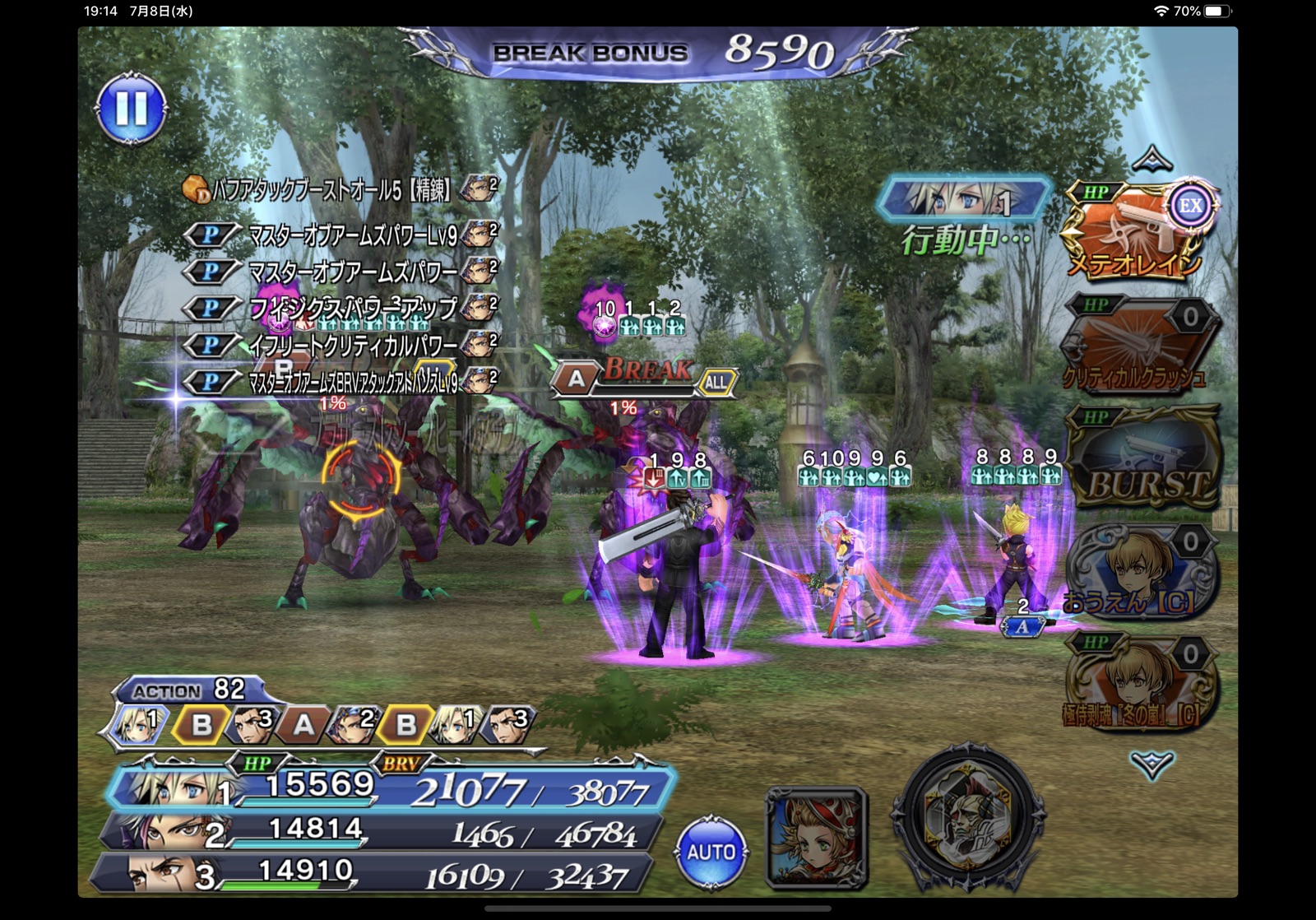 ということで、通常カオスの方はめんどくさかったので火力に物を言わせて速攻で沈めたのですが、グラディオはここブッ刺さりまくりですね☺敵のカウンターにカウンターをするという謎仕様のおかげで、アヴェンジャーのデバフなんか全く怖くねえぜ!!まあ、1wave目の最大HPダウンの不可視デバフを2wave目まで持ち越してしまうので、リキャスト技が脅威なんですけど。