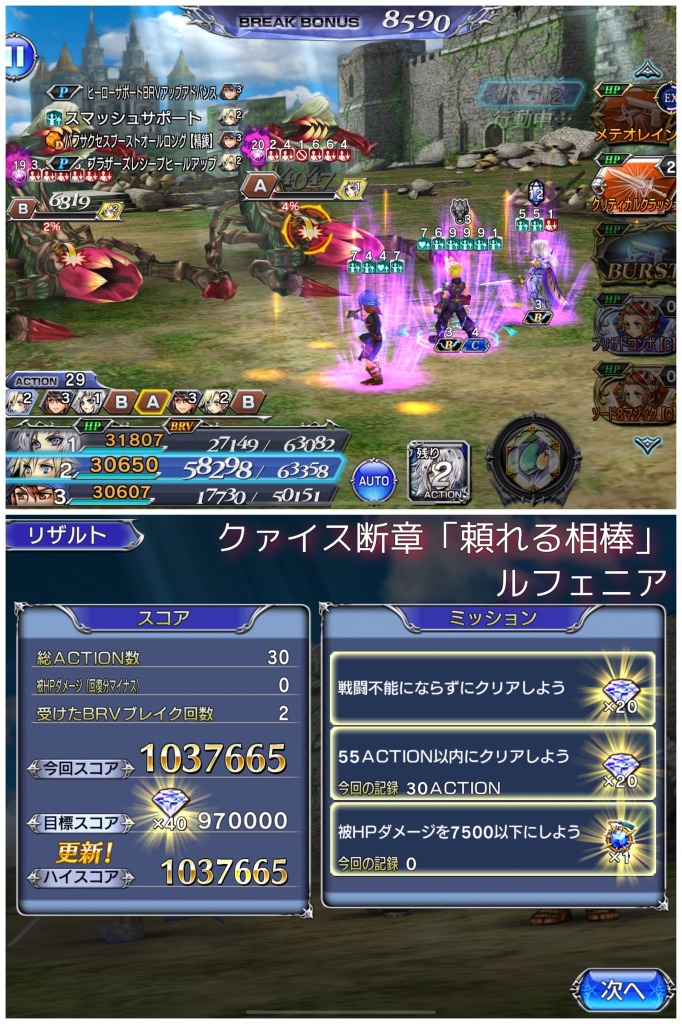 初見だったので、一応念には念を入れて敵のHPが50%切ったところでフレセシルを呼んでBTからのクラウドのBTを使用したのですがフレセシルが帰る前に終わったっていう…。カムバックマイセシル!!!!!?