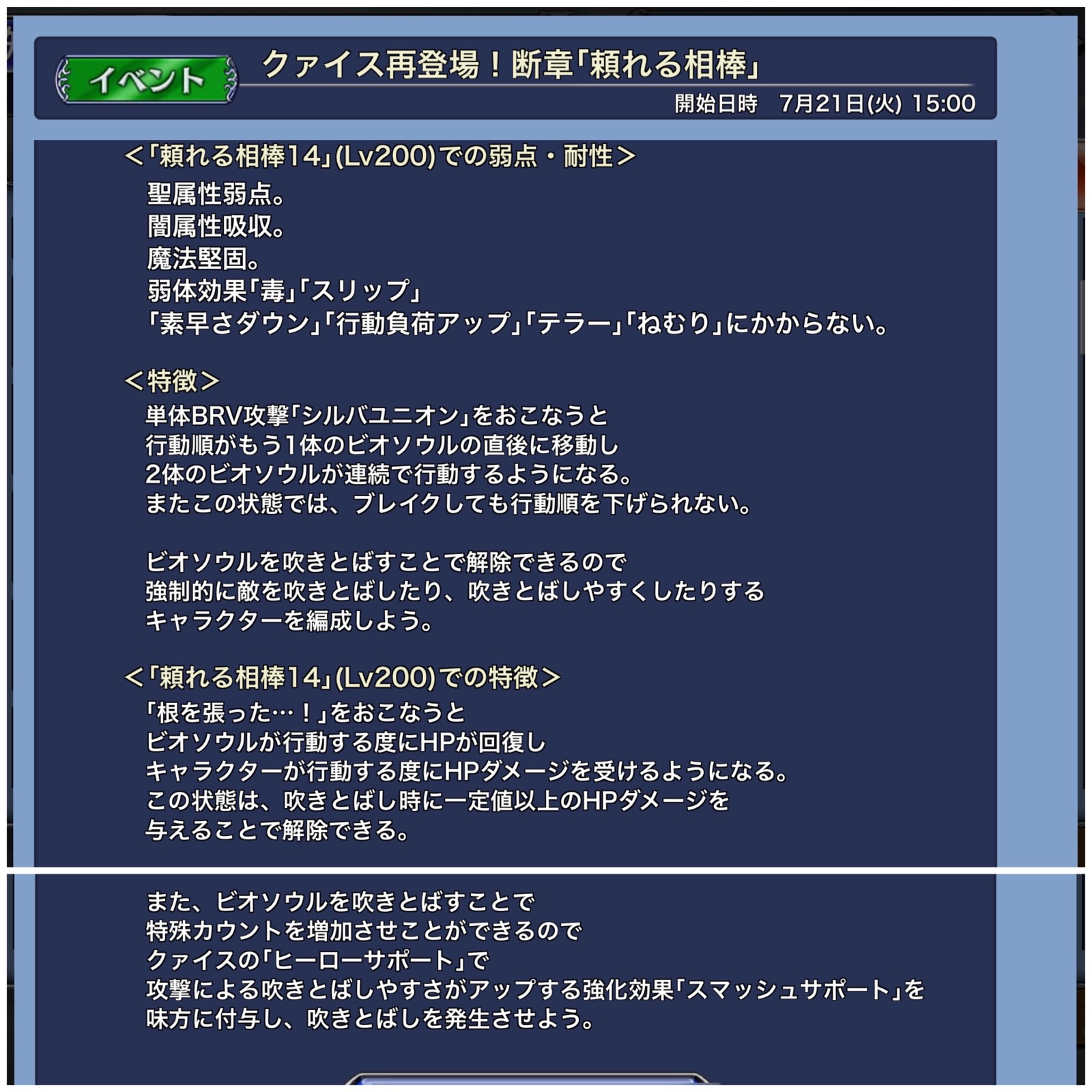 なお、闇属性吸収になってる辺り、同じセシルでも暗黒セシルの使用は許さんという運営の強い意志の力を感じます…。DFFOO世界では意志の力こそが全てなのです。