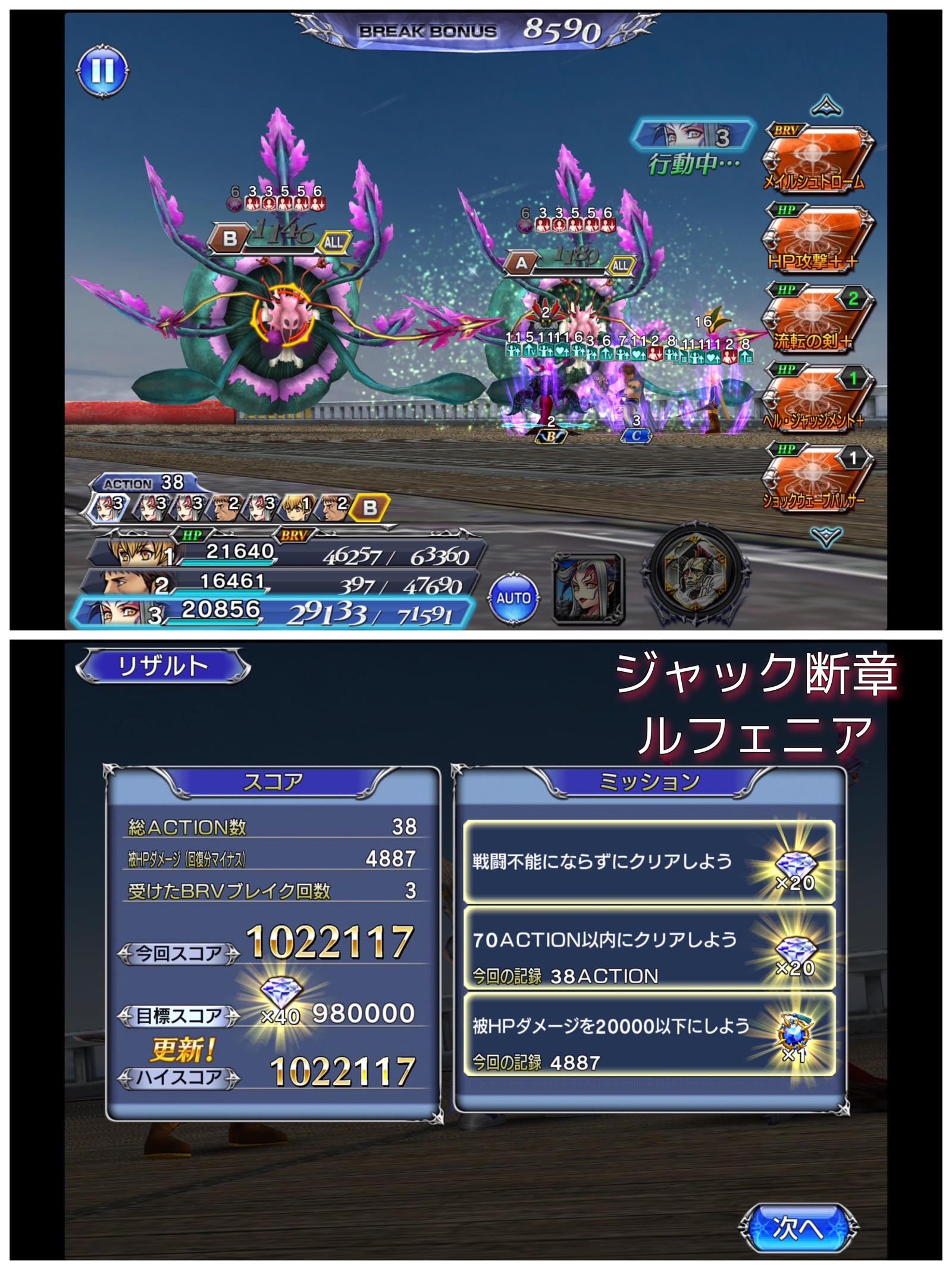 おまけに、HPの残量に応じてBRVをモリモリ加算してシールドも強化していくので加算を封じた上でなるべく敵を動かさないように遅延ハメするのが有効です。