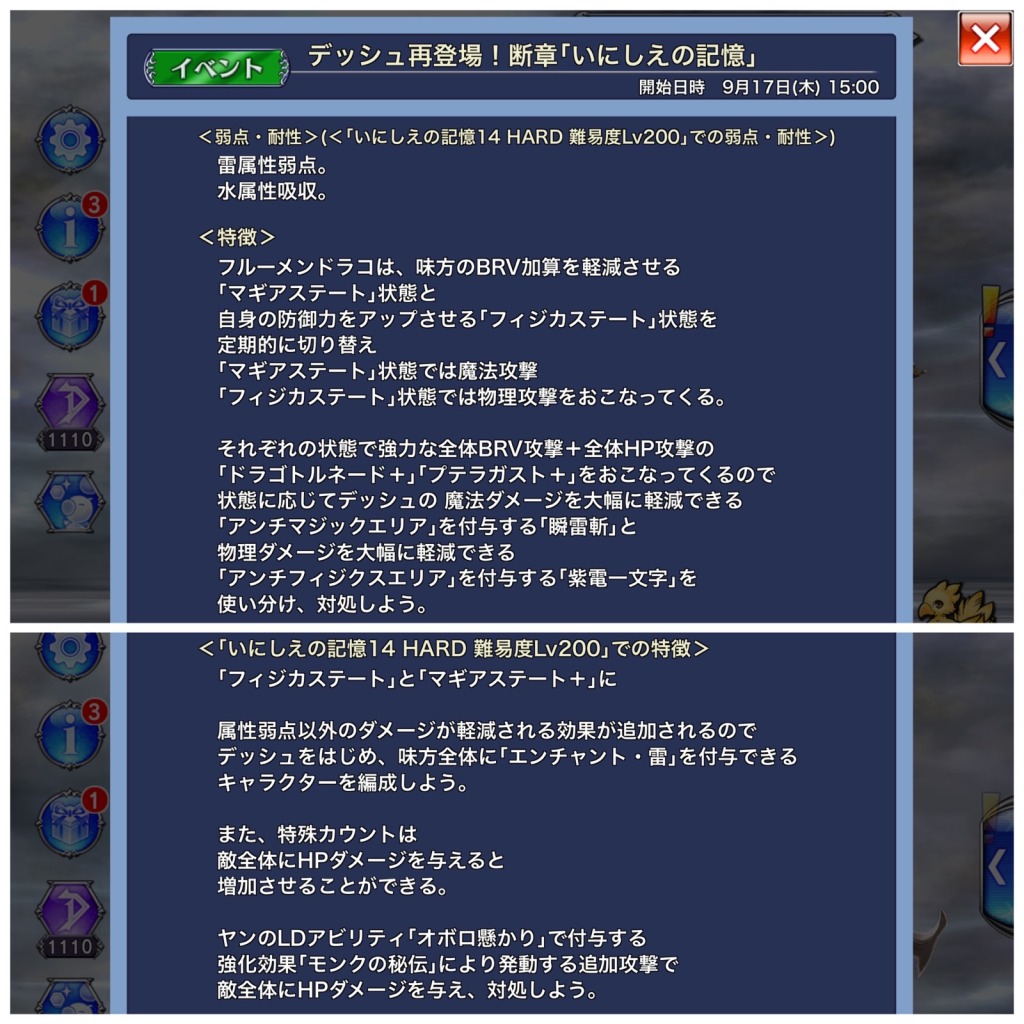 前置きはこのくらいにしておいて、直近のDFFOOイベントのプレイ日記行きたいと思います。既に何の話かわからないしwww