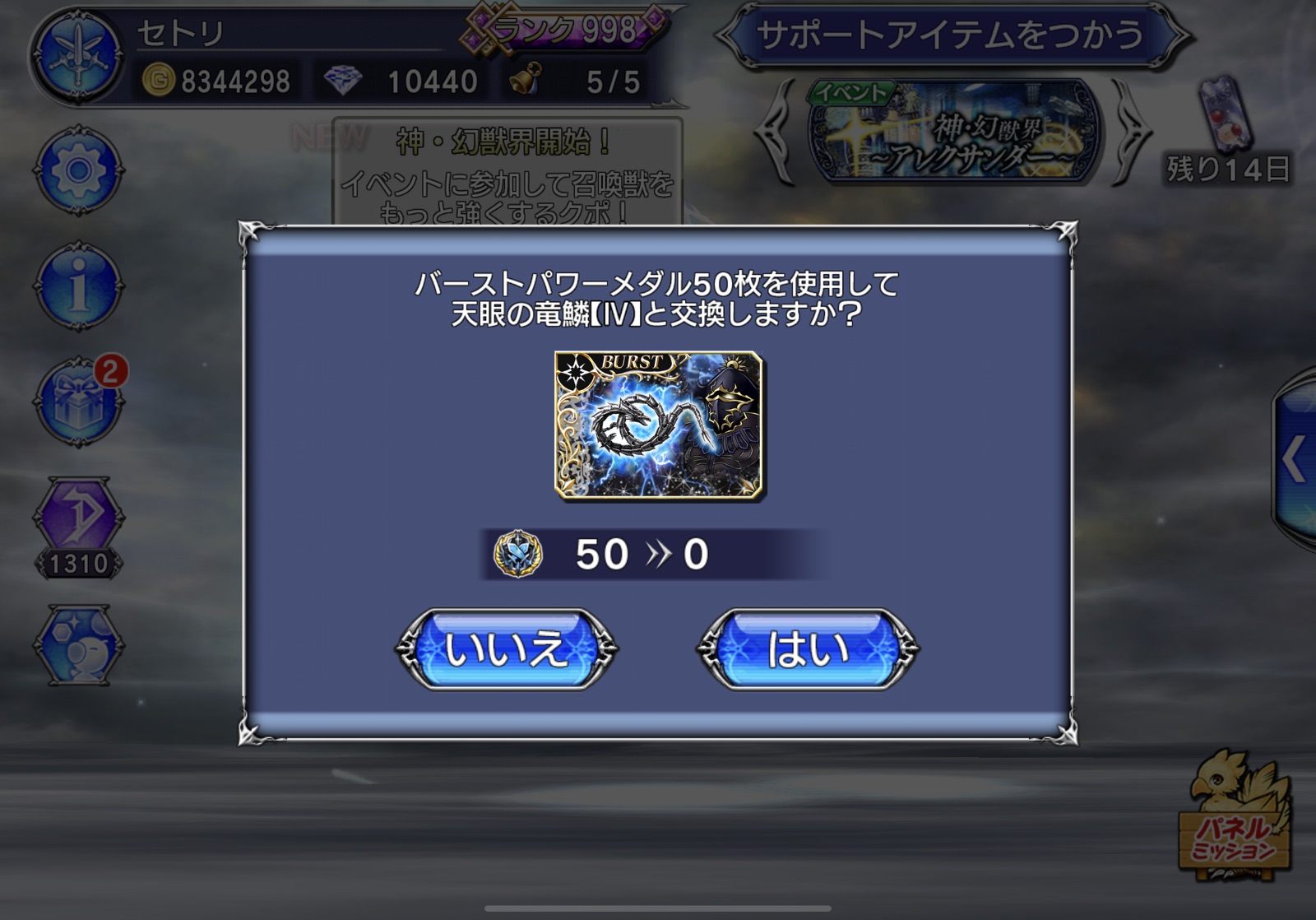 ちなみに、同じバロン組のカインはどうなのよって話なんですが、カインは全部メダル交換です???貴重なEXメダルを、真化もまだだったカインに貢いだのは私です。ちなみに、その後真化ガチャも暗黒セシルLD実装と一緒に再販されたときも、被りEXをほとんど引けてないので、やっぱりバロン王国には優良納税者だと思われてるのかもしれない。