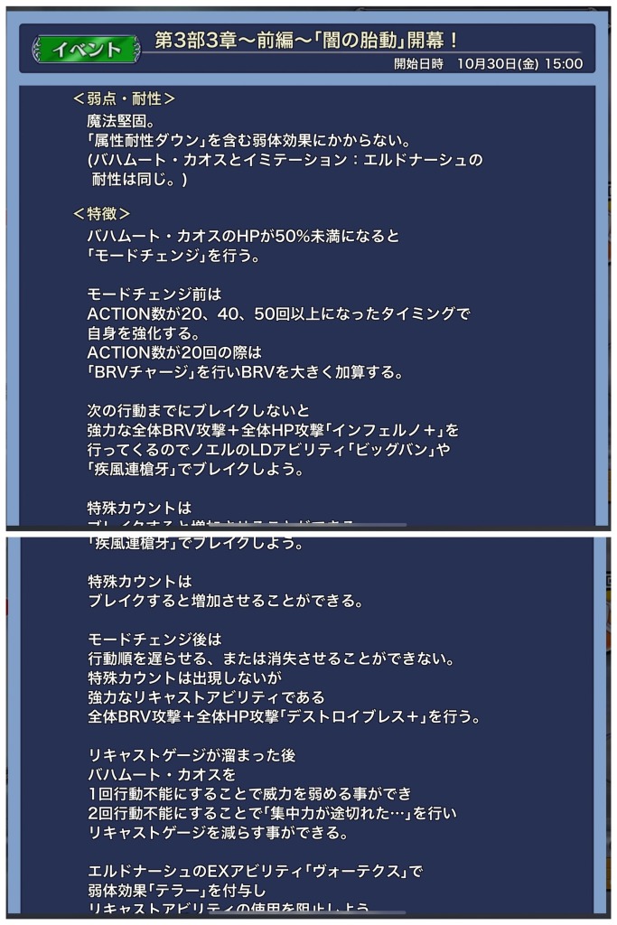 第二形態ではカウントがない代わりに、リキャスト攻撃が飛んでくるようになります。リキャストゲージが溜まったタイミングで「行動不能にしないとまずい!」とメッセージが出ますので、エルドナーシュのテラーやHP攻撃沈黙、ねむり、麻痺などで行動不能にさせます。行動不能状態で2ターン経過するとリキャストゲージがリセットされます。なお、ブレイク遅延以外の行動順遅延・消去は無効になっているので、それらでやり過ごすことはできません。行動不能状態でやりすごす点についてはコールと召喚でも十分対応しきれます。