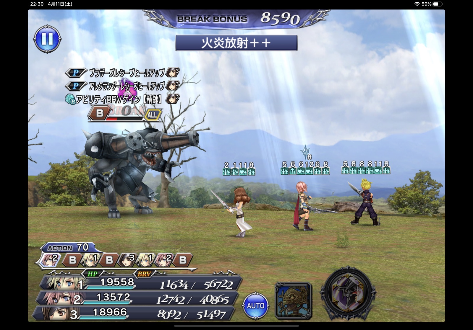 あと、双子ごっつい強いです。70%くらいのところでジェクトBTアビ使って一旦双子とチェンジしたんですけど、双子が50%くらい削って、あとはシャドウのカウンターやら諸々で気付けば10%くらいで取り巻きもいなくなってるし。ジェクトが帰ってきたところで一気に片付けようとBT2回目使ったんですが、手遅れでオーバーキルでした…。