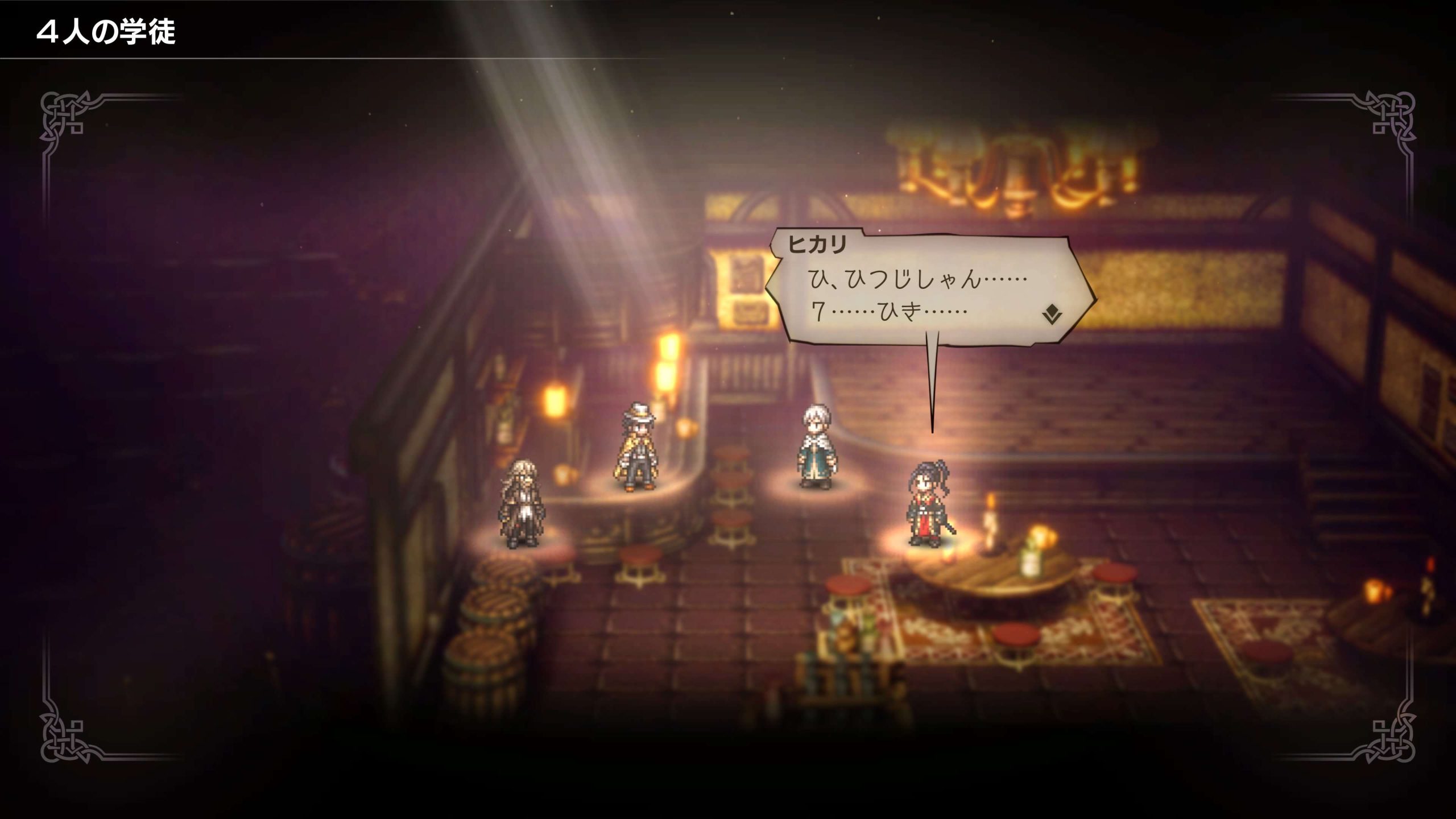でも、イベントシーンで8人全員揃っててめちゃくちゃ感動した。こういうのがメインでも見たかったの私!!! 8人全員いなくてもいいから、PTにいるキャラだけでもそこに立っててほしかったのよ…。PTチャットではちゃんと同行してますよって示唆されてますけどね!