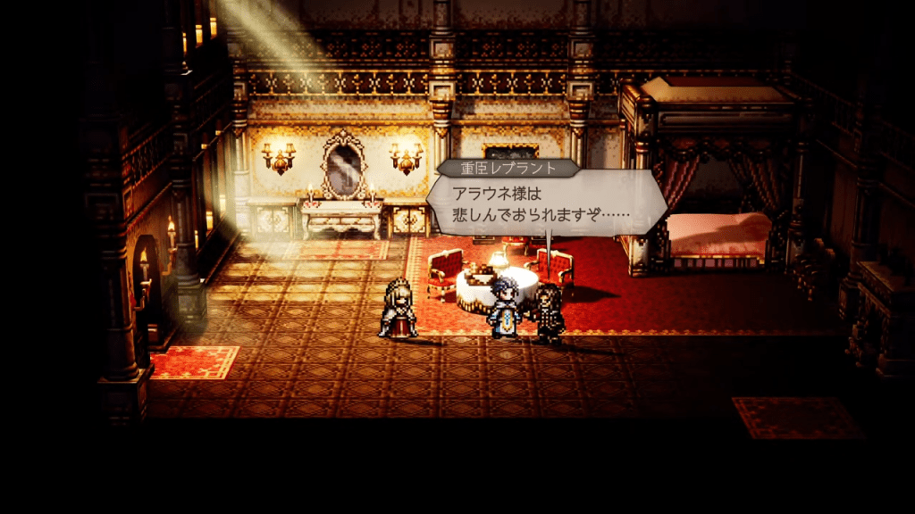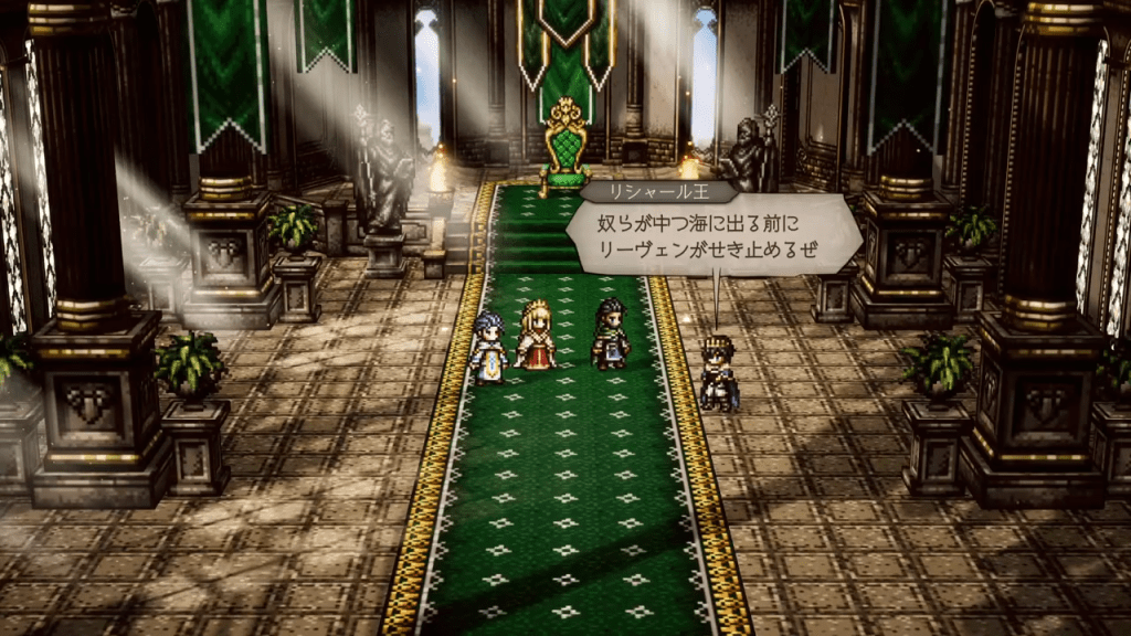 オフィーリアとサイラス先生が加入。これにて、1の旅人たちはみんなウィッシュベールに移住してしまいました。いいのかこれで。 このときは特に何とも思っていなかったのですが、1の時空だと8人で旅してたんだよなあ…と思うと、剛剣