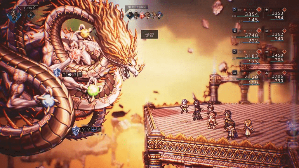 ピウスさんの必殺技が馬鹿強いことに気付いて早速起用するの巻。オクトラって全体バフのアビリティが結構少ない印象なのですが、ピウスさんは8人全員にバフをバラ撒きながら、更に敵にもデバフを撒く。つよい(確信) 闘技場用モンスタ