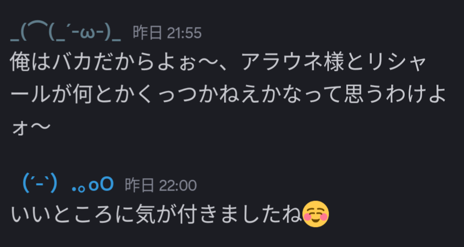 一方、リシャールとアラウネはお互いの矢印隠さなくなってきたので、これはこれでオクトラシリーズ的には珍しいな〜と思ったり。本当にEDで結婚するかも?(期待)